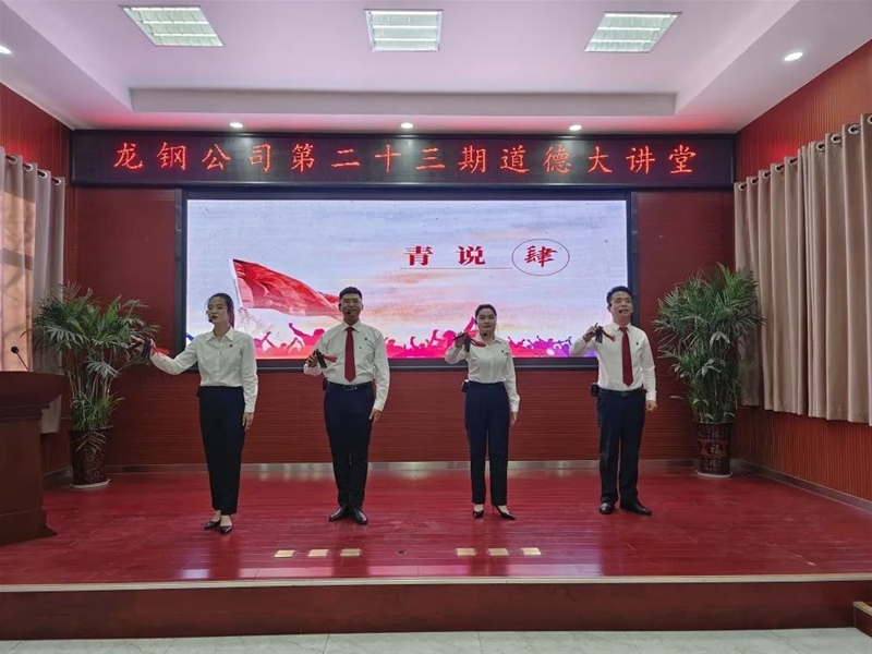 此次道德大講堂以“青春中國(guó) 強(qiáng)企有我”為主題,共設(shè)五個(gè)環(huán)節(jié)。青思環(huán)節(jié),全體在場(chǎng)人員一起聆聽(tīng)習(xí)近平總書(shū)記在黨的二十大報(bào)告中對(duì)青年的寄語(yǔ),激發(fā)了大家堅(jiān)定不移聽(tīng)黨話、跟黨走,與時(shí)代同步伐、與人民共命運(yùn)、與企業(yè)齊奮進(jìn)的昂揚(yáng)斗志;青聲環(huán)節(jié),一曲《少年中國(guó)說(shuō)》將青年心似驕陽(yáng)、意氣風(fēng)發(fā)的開(kāi)拓進(jìn)取之姿展露無(wú)遺;青才環(huán)節(jié),4名志愿者分享了鋼城優(yōu)秀青年的成長(zhǎng)故事,讓大家近距離感悟榜樣力量,體會(huì)先進(jìn)卓越,從而自覺(jué)對(duì)標(biāo)向模范看齊;青說(shuō)環(huán)節(jié),鏗鏘有力的快板表演讓黨的二十大精神更加深入人心,勉勵(lì)廣大青年堅(jiān)持學(xué)思用貫通、知信行統(tǒng)一;青拳環(huán)節(jié),退役青年軍人的擒敵拳打出了豪氣與壯志,更展現(xiàn)了龍鋼人堅(jiān)定理想、百折不撓、勇于創(chuàng)新、勇挑重?fù)?dān)的精氣神。
