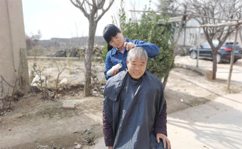 這是高靜30歲生日時(shí)發(fā)的一條朋友圈。她幫父老鄉(xiāng)親理發(fā)已經(jīng)不是第一次了,去年年初由于疫情,街道店鋪都關(guān)門停業(yè),理發(fā)變成了困擾鄉(xiāng)親們的難題。高靜看在眼里急在心里,能為大家做點(diǎn)什么?她自掏腰包在網(wǎng)上買了電動(dòng)理發(fā)器,從給家人理發(fā)學(xué)起,一遍又一遍地練習(xí),心靈手巧的她很快掌握了理發(fā)技能,先后共計(jì)理發(fā)80余人,得到了鄉(xiāng)親們的一致稱贊。