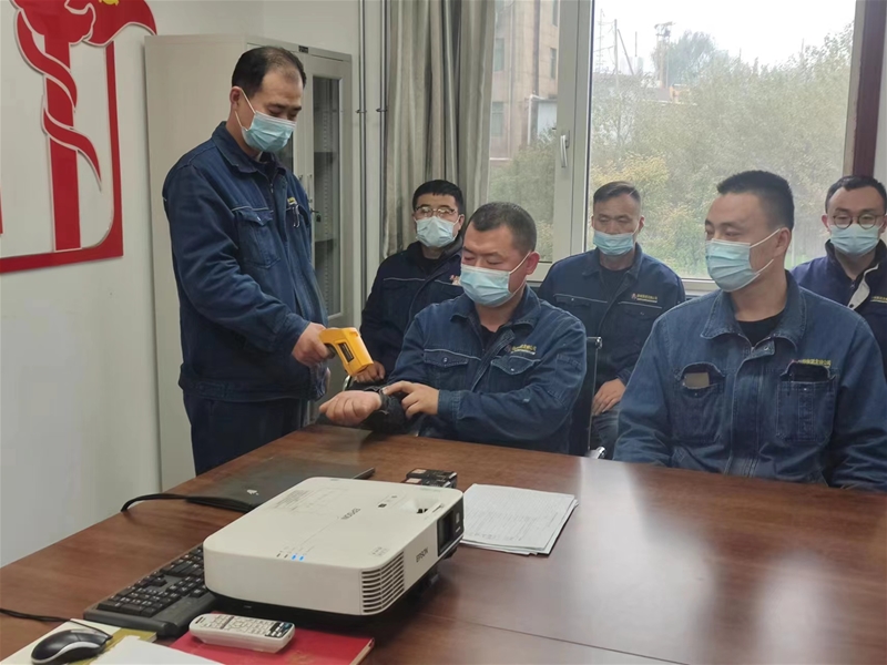筆者上夜班見(jiàn)到他時(shí),他依舊笑臉相迎不厭其煩地在測(cè)溫,查驗(yàn)健康碼和核酸檢測(cè)結(jié)果。有人質(zhì)疑他“不嫌麻煩”,他幽默風(fēng)趣地笑著解釋?zhuān)?ldquo;疫情多變,無(wú)癥狀感染者人數(shù)居多,咱們千萬(wàn)不能掉以輕心,這樣做不麻煩,而是為了大家都能安心在廠、安全在崗。”說(shuō)完,他繼續(xù)負(fù)責(zé)測(cè)溫、查碼,并不知疲倦地巡查北門(mén)初檢和自動(dòng)采樣站揭篷布兩個(gè)重點(diǎn)崗位。