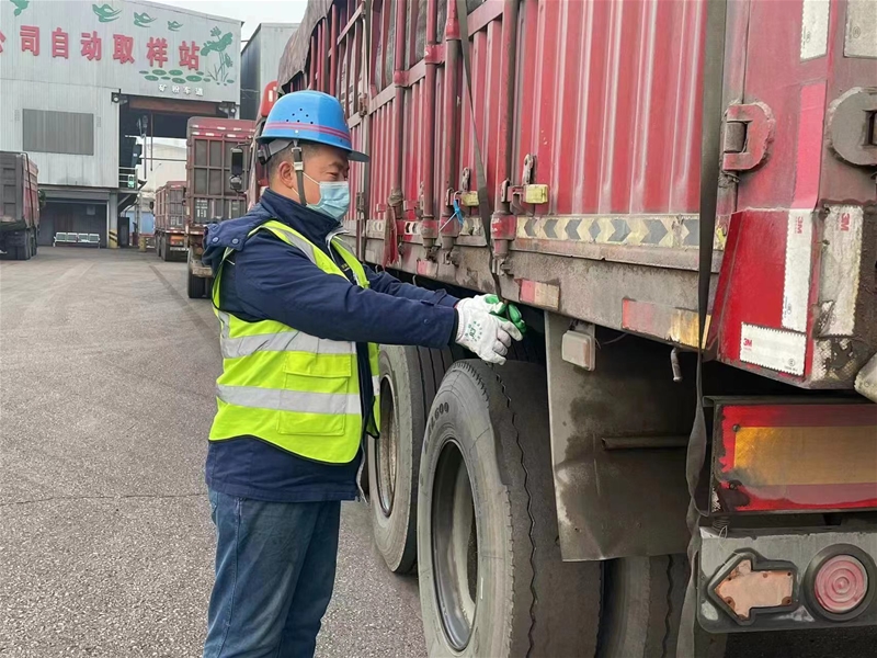 受疫情影響,公司近段時(shí)間對(duì)外來(lái)汽運(yùn)車(chē)輛采取不同措施,落實(shí)“外防輸入”,最大限度保供生產(chǎn)用料。少了面對(duì)面的接觸,但服務(wù)不能打折扣、降標(biāo)準(zhǔn)。北門(mén)初檢組長(zhǎng)曹志永正在提醒進(jìn)入初檢大廳的辦票人員:“您好,請(qǐng)排隊(duì)間隔一米登記,測(cè)量體溫,出示行程碼、健康碼、24小時(shí)核酸報(bào)告。”雖然廣播的語(yǔ)音在播放,但他依然穿著防護(hù)服耐心地對(duì)司機(jī)進(jìn)行溫馨提示。面對(duì)管控封條的車(chē),他不怕辛苦和危險(xiǎn),緊跟著兩個(gè)工作人員不時(shí)遞水和面包,檢查車(chē)輛外觀封簽和水箱情況,跑前跑后替司機(jī)辦理進(jìn)廠票據(jù)和卡,然后囑咐司機(jī)全程不下車(chē),佩戴好口罩,保護(hù)好自己。