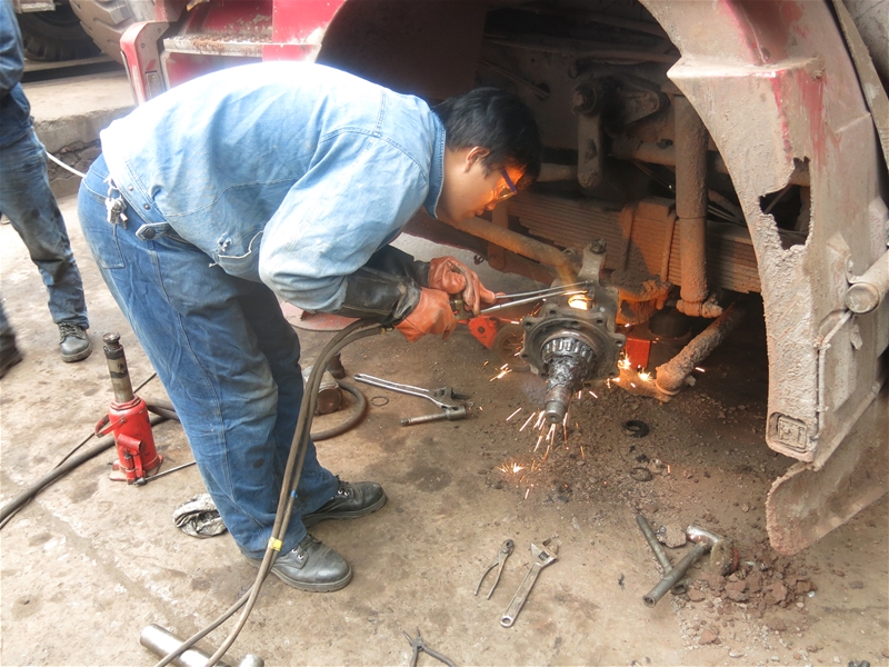 項(xiàng)目簡(jiǎn)介:翻斗車拋灑槽翻轉(zhuǎn)軸使用φ16mm圓鋼與6分鋼管組成。由于汽車大箱升起頻繁,且圓鋼強(qiáng)度不夠,圓鋼很容易變形。致使翻轉(zhuǎn)不靈活,造成拋灑槽變形,且槽內(nèi)物料常有存料,造成沿路拋灑。為了增加圓鋼強(qiáng)度,改用廢舊汽車鋼板卡子,加工成翻轉(zhuǎn)軸后,固定在大箱底部并與套有一定配合間隙,這樣既能增強(qiáng)了軸的強(qiáng)度,又使拋灑槽翻轉(zhuǎn)更靈活。不僅降低了費(fèi)用,每臺(tái)車可節(jié)約φ16圓鋼1米、減輕了員工的勞動(dòng)強(qiáng)度、解決了拋灑槽翻轉(zhuǎn)不靈,易變性的問題而且