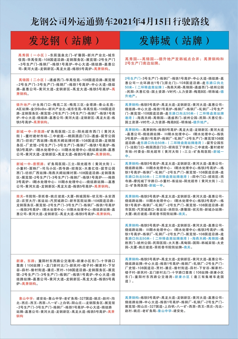 龍鋼公司外運通勤車時間表2021年4月15日