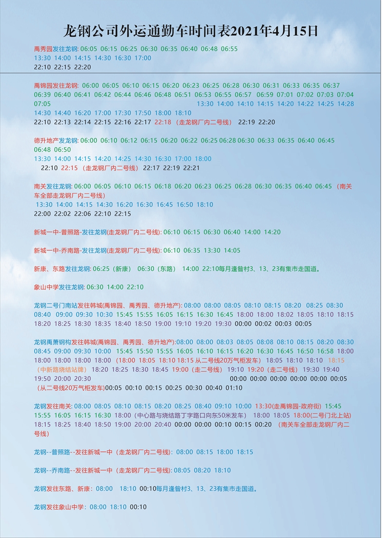 龍鋼公司外運(yùn)通勤車時間表2021年4月15日