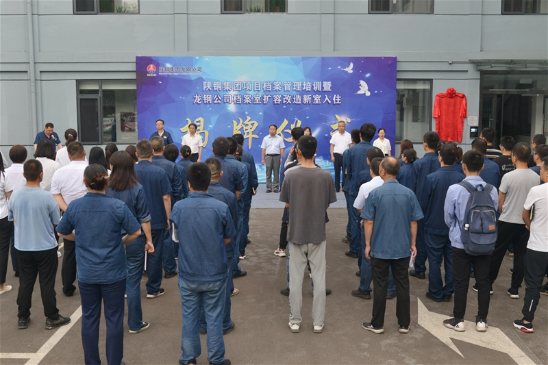 7月22日,陜鋼集團(tuán)項(xiàng)目檔案管理培訓(xùn)暨龍鋼公司檔案室擴(kuò)容改造新室入住揭牌儀式在龍鋼公司檔案室樓前順利舉行。韓城市檔案局副局長孫燕、寶山鋼鐵公司檔案咨詢總監(jiān)葛敏、陜西金銀島建筑工程有限公司董事長張忠潮、陜煤集團(tuán)綜合部業(yè)務(wù)主任張春喜、陜鋼集團(tuán)高級經(jīng)理張靜等應(yīng)邀參加,龍鋼公司副總經(jīng)理朱元洲及漢鋼公司、龍鋼集團(tuán)、創(chuàng)新研究院以及脫硫提升、煉鋼技術(shù)改造等項(xiàng)目部、施工單位檔案負(fù)責(zé)人參加儀式。