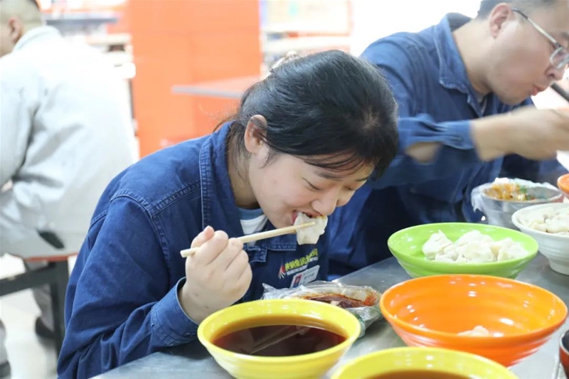 儲(chǔ)運(yùn)中心管理人員和一線職工一起流水線作業(yè),為全體職工烹制了美味的餃子宴,職工們對(duì)此次活動(dòng)贊不絕口,充分感受到了企業(yè)濃濃的祝福和關(guān)懷。