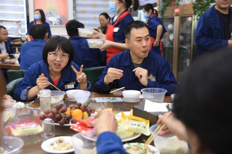 軋鋼廠工會(huì)抽調(diào)20名青年女工,在軋鋼職工餐廳分工協(xié)作,水果裝盤(pán)、月餅上桌,用細(xì)致周到的服務(wù)迎接前來(lái)就餐的職工,為讓不能前來(lái)餐廳就餐的職工共享美味,軋鋼廠工會(huì)還特別配置分裝飯盒,貼上祝福標(biāo)語(yǔ),將一份份美味的餃子、精致的果盤(pán)、月餅配餐到崗,讓全員都能感受到企業(yè)濃濃的節(jié)日氛圍。