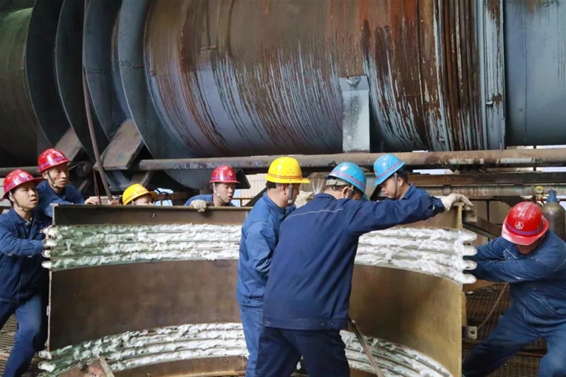 “來(lái),再來(lái)兩個(gè)人,抬一下膨脹節(jié)……”有人艱難地拉動(dòng)備件,有人趕來(lái)幫忙,嘴里還喊著人員支援。話(huà)音未落,不遠(yuǎn)處外協(xié)工隊(duì)的工人們都跑了過(guò)來(lái),齊心協(xié)力把膨脹節(jié)搬抬至指定位置。“小劉,廢舊的保溫磚一定要清理干凈!”“王師,管道焊接一定要高質(zhì)量!”“收到,一定保障新保溫磚鋪好……”