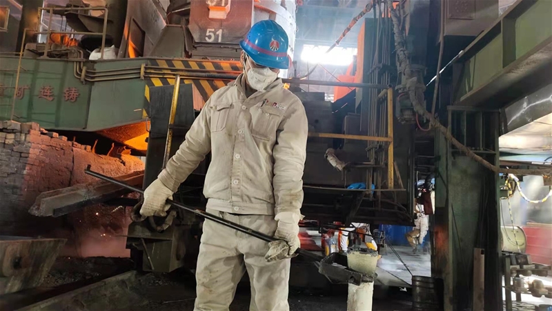 “小強,過來幫忙卸套管。”4#連鑄機臺上組長張光輝喊道。“好的,馬上來。”正在打掃平臺衛(wèi)生的中包工小強迅速回應。