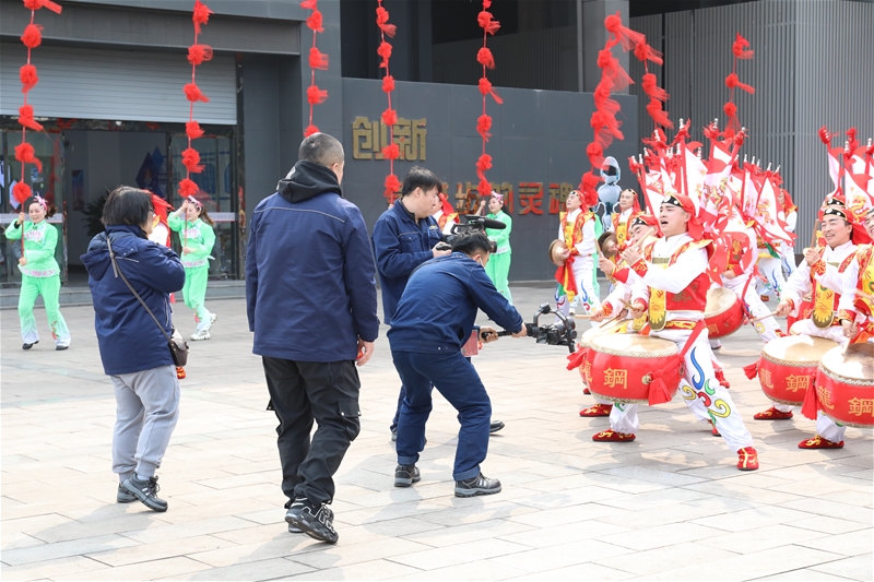 3月11日10:00,拍攝組在龍鋼公司煉鐵廠5#高爐拍攝龍鋼威風(fēng)鑼鼓。