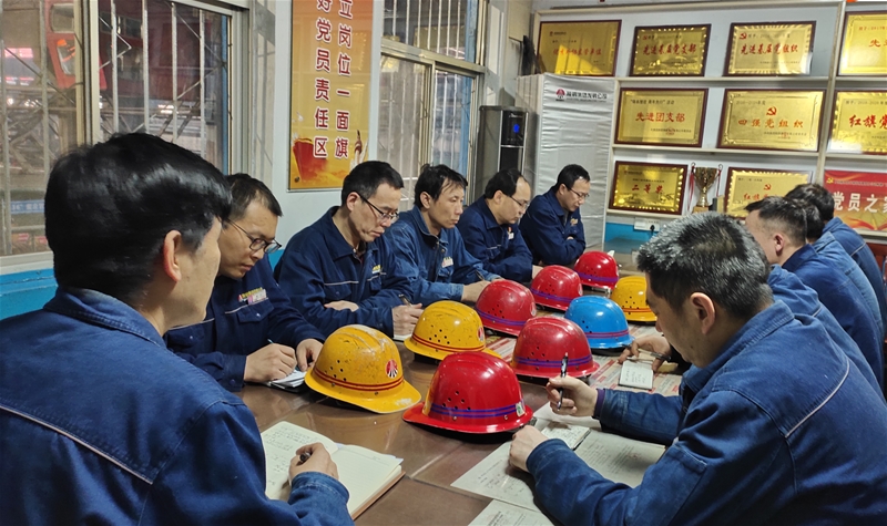 “作為基層干部我們一定要起到模范帶頭作用,為完成‘雙目標(biāo)’任務(wù)扛死肩、硬負(fù)責(zé),為打贏‘三大翻身仗’發(fā)揮積極作用……”在連一作業(yè)區(qū)碰頭會(huì)上支部書記兼作業(yè)長(zhǎng)雷會(huì)林動(dòng)員各級(jí)管理人員。