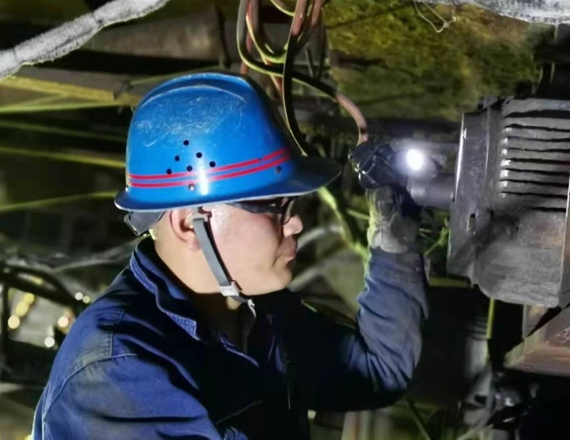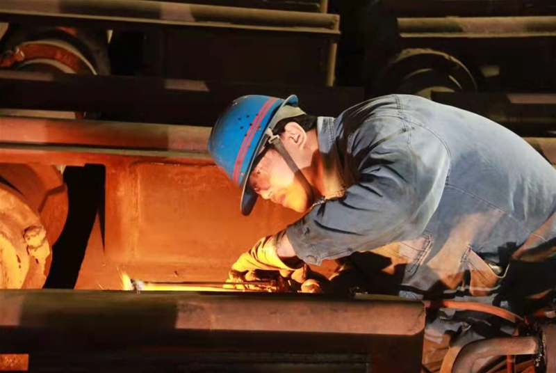 在3#轉(zhuǎn)爐爐下渣道,當(dāng)爐渣的余熱還充盈在爐下每一處時(shí),更換爐下軌道的檢修作業(yè)已經(jīng)開始了。維修班長徐永斌正帶著幾位工友在拆卸渣道軌道上的連接板,由于連接板螺栓上得緊,特別難拆,幾個(gè)人用專用工具,卡在螺栓上,咬緊牙關(guān),一毫米一毫米地拆卸著。在渣道的另一頭,維修主管趙雷和安全員高明生帶領(lǐng)人員正將新軌道一米一米抬過去。遠(yuǎn)遠(yuǎn)望去,那些“紅、黃、藍(lán)”分工協(xié)作,配合得天衣無縫。他們一個(gè)個(gè)臉上掛滿了汗珠,忍受著炙烤,但他們無暇理會這些,他們時(shí)刻在想著,在安全的保證下,一定要高效完成檢修任務(wù),交上一份滿意答卷。
