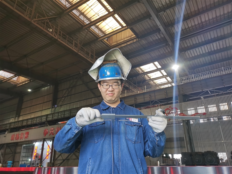 下午兩點半,筆者走進熱浪滾滾的板鏈區(qū)域,只見身著厚重的工服,戴著隔熱面罩的趙宇輝正在俯身測量板材的厚度和寬度,他快速測量后,轉(zhuǎn)過身,背靠著火紅的板材,掀起面罩,準(zhǔn)確讀數(shù)后,顧不上喘口氣,便走進值班室填寫記錄,碰上測量尺寸超差的,立刻用對講機聯(lián)系軋線主調(diào)整工進行壓料或者放料操作,為確保成品質(zhì)量,他始終堅守在軋線最熱的地方。據(jù)了解,正常情況下半小時測量一次板材尺寸就可以,若遇到軋線頻繁換號,就要根據(jù)生產(chǎn)實際增加測量次數(shù),有時需要連續(xù)測量半小時以上。板鏈區(qū)域是板帶生產(chǎn)線溫度最高的地方,尤其到下午,熱浪襲來,烤得人異常難受,但即使這樣艱苦的工作環(huán)境,他依然無怨無悔堅守在生產(chǎn)一線,不懼“烤”驗戰(zhàn)高溫,以實干彰顯青年擔(dān)當(dāng)。