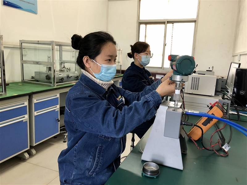 為確保生產(chǎn)正常運(yùn)行,她們置身生產(chǎn)一線,利用便攜式檢測(cè)設(shè)備,對(duì)壓力、溫度、流量、電磁等測(cè)量?jī)x器進(jìn)行在線檢測(cè)。壓力設(shè)備采取相同壓力源多點(diǎn)位進(jìn)行比對(duì),計(jì)算誤差值是否在允許范圍內(nèi);溫度類設(shè)備先使用紅外測(cè)溫儀進(jìn)行測(cè)試,再根據(jù)主控室顯示的數(shù)據(jù)進(jìn)行比對(duì),判定其是否合格;電能表則通過(guò)標(biāo)準(zhǔn)表與被檢表相連接,通過(guò)變比值計(jì)算出電流值,根據(jù)現(xiàn)場(chǎng)電壓值與標(biāo)準(zhǔn)器示值進(jìn)行比對(duì);在線流量積算儀通過(guò)與多功能信號(hào)儀連接,在線檢測(cè)輸出信號(hào)值是否在允許范圍內(nèi)……她們瘦小的身影穿梭在縱橫交錯(cuò)的設(shè)備與管道間,為一臺(tái)臺(tái)測(cè)量設(shè)備檢測(cè)、分析,與現(xiàn)場(chǎng)工作人員進(jìn)行溝通,確認(rèn)每一臺(tái)設(shè)備性能正常。