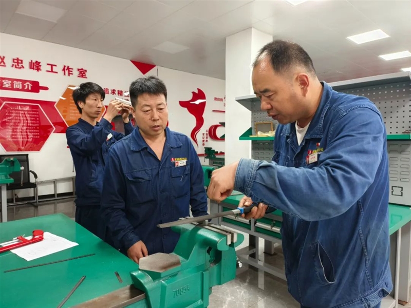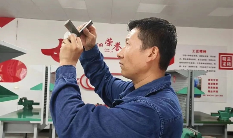 “此次比賽大家在打磨過程中一定要精準(zhǔn)計(jì)算,將誤差降低在正負(fù)0.1mm之間……”在“操檢合一”鉗工技術(shù)比武現(xiàn)場,評(píng)委趙忠峰正為學(xué)員現(xiàn)場講解比賽要領(lǐng)。