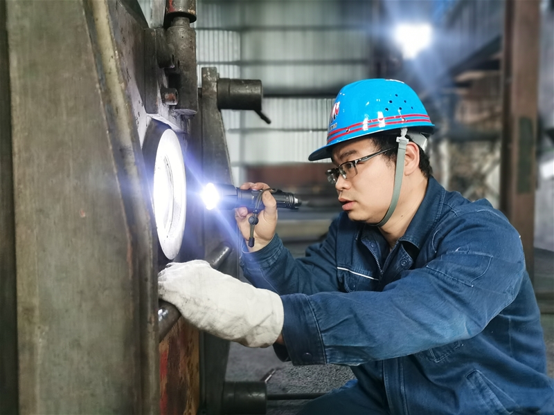 磨機(jī)是噴煤的重要設(shè)備,主要為高爐生產(chǎn)優(yōu)質(zhì)煤粉。2023年3月,噴煤二區(qū)3#磨機(jī)出現(xiàn)異常,較以往吐煤多,磨機(jī)有輕微振動(dòng)。他仔細(xì)檢查設(shè)備,查看生產(chǎn)數(shù)據(jù),反復(fù)研究對(duì)比,多次深入磨機(jī)內(nèi)部檢查問題,每次出來都是全身烏黑,偌大個(gè)臉龐只看見兩只眼睛在動(dòng),開口說話一口白牙,大家忍不住打趣,笑稱他為“李黑子”。