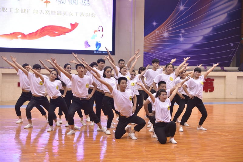 全健排舞比賽中,由機(jī)關(guān)總支、煉鋼廠、煉鐵廠、軋鋼廠、燒結(jié)廠選送的舞蹈逐一登臺亮相。她們鏗鏘有力、朝氣十足的表演,充分展示了鋼鐵兒女的火熱情懷和青年女工的青春朝氣。