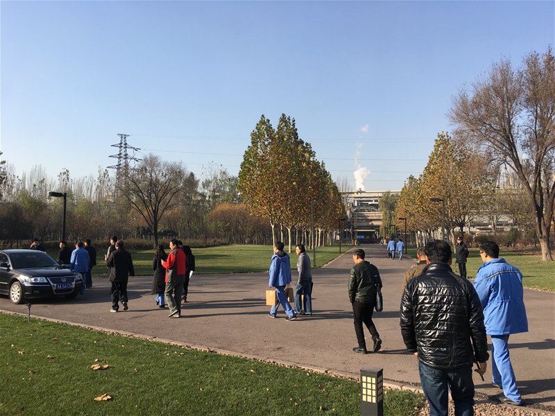活動期間,90余名代表共同出席了太鋼杯全國冶金行業(yè)職工美術(shù)書法作品展覽開幕式,參觀了位于廠區(qū)內(nèi)的太鋼博物園及廠史展覽館。進入廠區(qū),白色外墻的生產(chǎn)車間掩映在高低錯落樹木植物之間,潔凈寬敞的柏油路上,各色線條清晰,機動車道與非機動車道分線而行,白色燈桿上,懸掛著勞動光榮、勞動偉大之類的文化標(biāo)語,職工們身著淺藍色的工作服,愜然自信的行走。廠區(qū)噪音很小,完全感受不到工業(yè)生產(chǎn)對環(huán)境的破壞干擾。相反,倒覺得仿佛是進入了一座城市公園。十里鋼城完全與自然環(huán)境和諧一體,與城市和諧一體。
