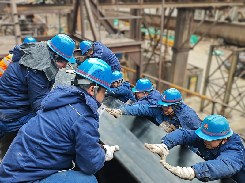 “好,準(zhǔn)備拉皮帶!”“一二、一二、一二……”在凜冽的寒風(fēng)中,他們七人組成的檢修隊(duì)伍,僅用6個(gè)小時(shí)就完成了404#皮帶更換任務(wù)。此刻,參檢人員的口罩上、眉毛上凝結(jié)了許多細(xì)密的水汽……