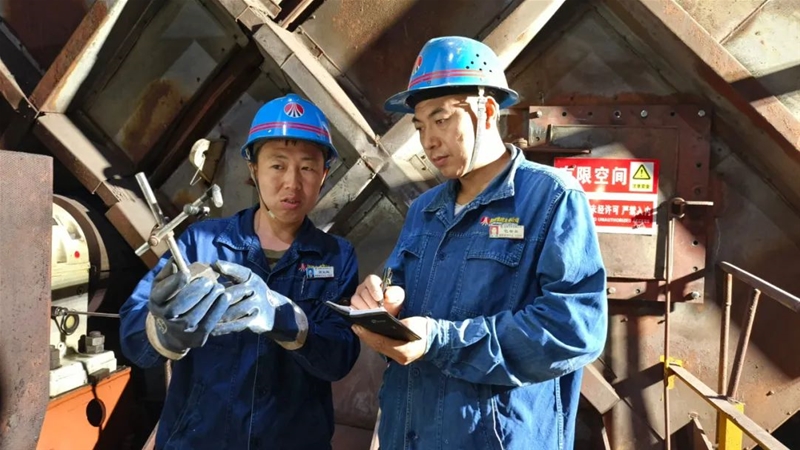 在完成通風(fēng)、氧含量和有害氣體檢測(cè)合格后,閆剛強(qiáng)“全副武裝”,對(duì)自己的勞護(hù)用品和安全工器具再一次確認(rèn),帶頭鉆進(jìn)40cm×50cm的長(zhǎng)方形人孔門,身著密不透風(fēng)的防塵服穿梭在40℃的電場(chǎng)內(nèi)部。兩臺(tái)除塵器8個(gè)電場(chǎng)的檢查任務(wù),讓他已無(wú)暇顧及艱苦的作業(yè)環(huán)境,僅半個(gè)電場(chǎng)就有21排極線、22排極板、22個(gè)振打錘。每一個(gè)他都要檢查陰極線有無(wú)彎曲斷裂、陽(yáng)極板有無(wú)脫槽、定位板有無(wú)脫落,振打錘有無(wú)磨損……確保回路完整和導(dǎo)線連接牢固。