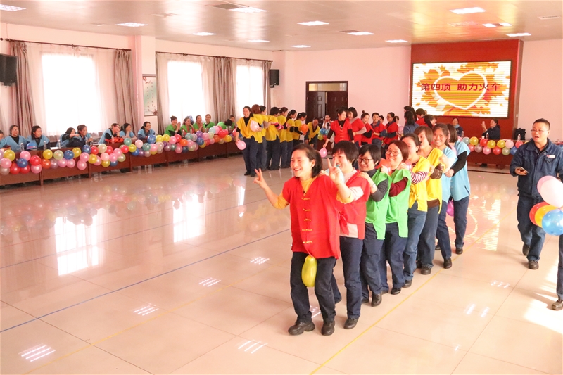 下午兩點(diǎn),來自各單位的60余名女工代表歡聚一堂,共同慶祝自己的節(jié)日。此次團(tuán)隊(duì)游藝活動共有五個(gè)參賽隊(duì),設(shè)置“黃金拍檔、穿越呼啦圈、鐵人接力、助力火車”四個(gè)項(xiàng)目。活動過程中,參賽隊(duì)員個(gè)個(gè)精神抖擻、奮勇爭先,盡情享受運(yùn)動的快樂,充分展現(xiàn)了“半邊天”的智慧和奮發(fā)向上的干勁。由女職工自導(dǎo)自演的手語舞《讓愛傳出去》將活動推向了高潮。